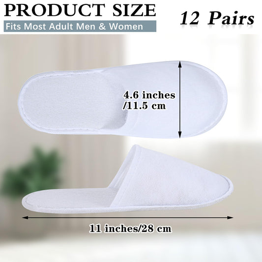 12 Pairs Disposable Spa Slippers Fluffy Closed Toe Spa Slippers for Hotel, Home, Guest Use, Fits up to US Men Size 10 and Women Size 11
