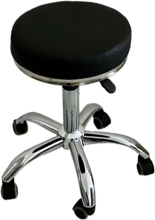 Round Rolling Stool Chair PU Leather Height Adjustable Swivel Drafting Work SPA Shop Salon Stools with Wheels Office Chair-Clinic (Black)