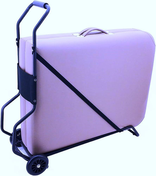 Professionalable Portable Bed Spa Hight Adjustable 2 Folding Facial Cradle Salon W/Carry Case Cream Color Wheeled Massage Universal Cart Lightweight Folding Rubber Wheels & sturdy strap securely