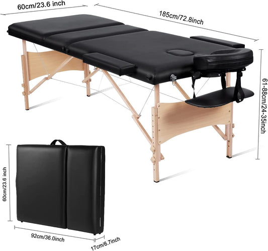 Profrssional Portable 3 Folding Massage Table Adjustable Height with Carry Case load capacity 250 KG