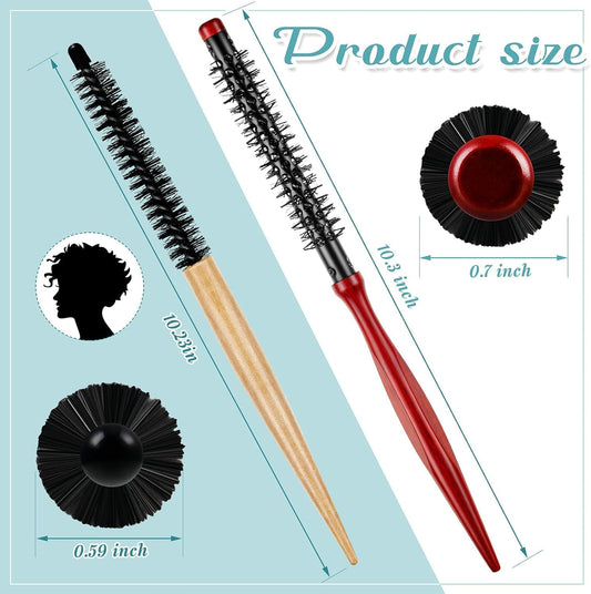 Round Hair,Round Hair Brush for Blow Drying,Small Round Brush for Short Hair,Roller Comb, Wooden Pointed Tip Handle, Nylon Bristles Hair Styling Brush Comb