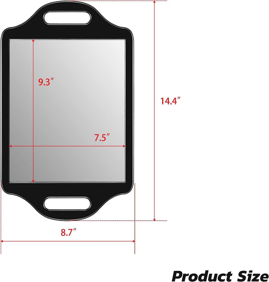 Large Hand Mirror with Handle -Professional salon mirro- hair stylist-Rectangular barber handheld mirror. (Black)